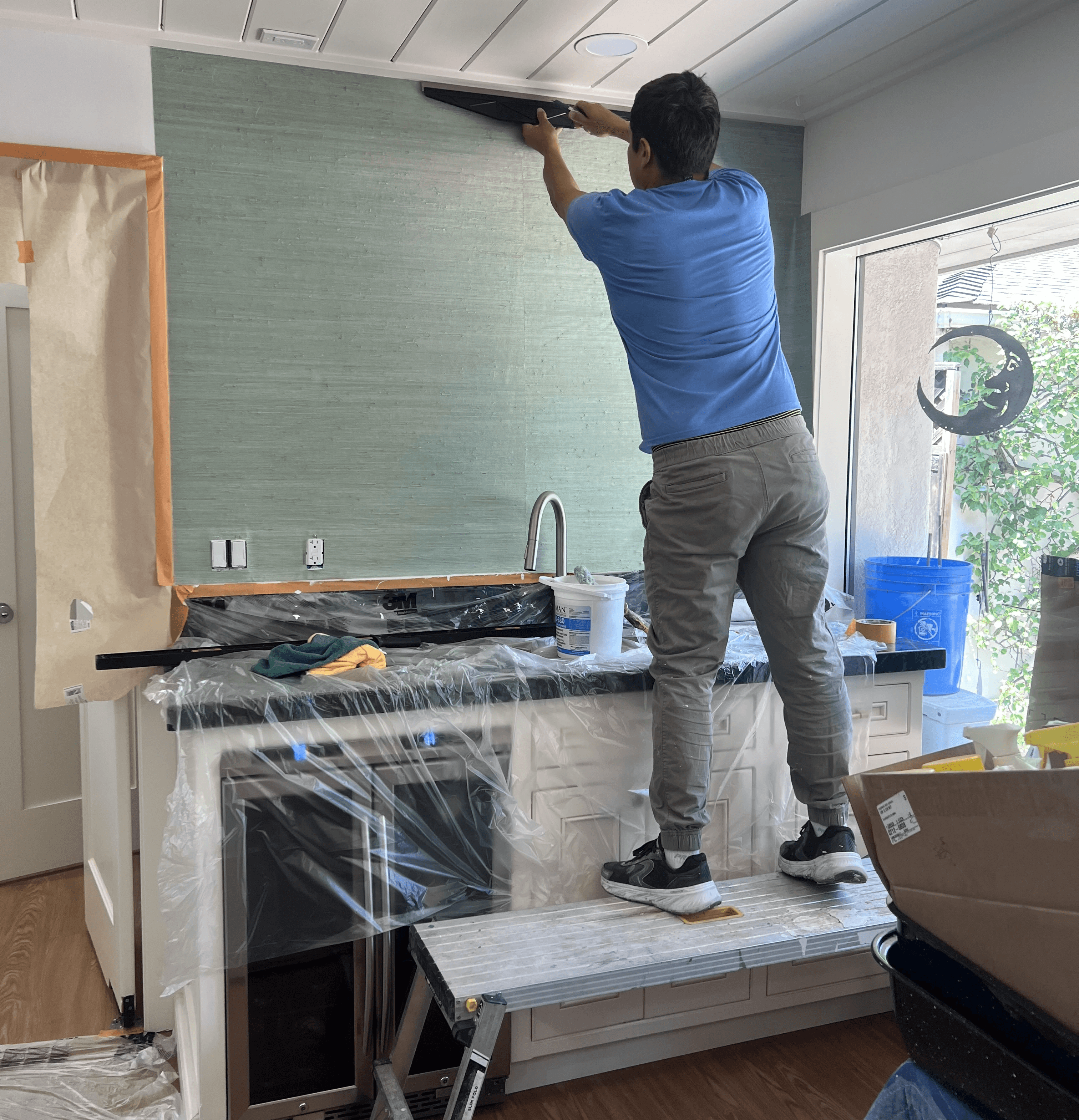 This kitchen project features a delicate natural wallpaper installed on a single accent wall. We carefully prepared the surface, aligned the pattern, and made precise cuts to ensure invisible seams and a perfectly smooth finish. The new accent wall adds warmth, texture, and character to the space, turning the kitchen into a more cozy and stylish room. The project was completed in one day for a total cost of $1,200 including wall preparation and wallpaper installation.